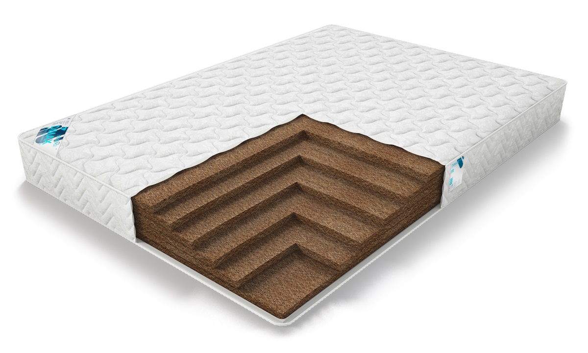 Наполнитель представляет из себя несколько слоев кокосового волокна, пропитанных для упругости латексом. Это натуральный материал, он не вызывает аллергии, выводит влагу, хорошо вентилируется.