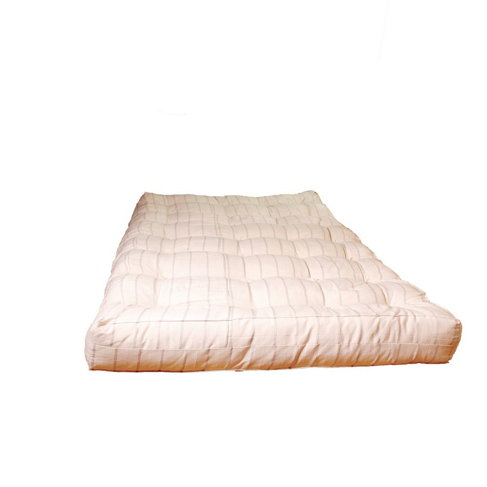 Чехол матраса выполнен из тика, 100% хлопка, что обеспечивает долговечность и устойчивость к истиранию. Наполнитель из белой ваты, 100% хлопок, обеспечивает мягкость и комфорт при использовании.