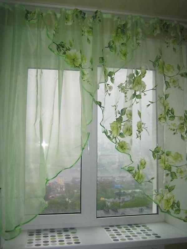 Шторы, это не просто украшение на окна, они создают особый уют  в комнате. Шторы углы на кухню  представлены красивым зеленым оттенком с нежными цветами на нем. Зеленый цвет на кухне, это самое лучшее решение. Зеленый цвет вызывает чувство гармонии, покоя и безмятежности. Купить шторы  углы можно и золотистого цвета в сочетании с белым. На белой стороне штор изображены цветы. Такие шторы поднимут настроение,  привнесут ощущение праздника и торжественности. Длина штор до подоконника.